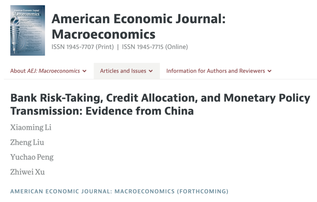 近期,88858cc永利官网教授彭俞超,与对外经济贸易大学李晓明,旧金山联邦储备银行Zheng Liu,复旦大学许志伟,合作撰写的论文“Bank Risk-Taking, Credit Allocation, and Monetary Policy Transmission: Evidence from China”(银行风险承担、信贷配置与货币政策传导——来自中国的证据)被宏观经济学国际顶期American Economic Journal: Macroeconomics接受待刊并在线发表。